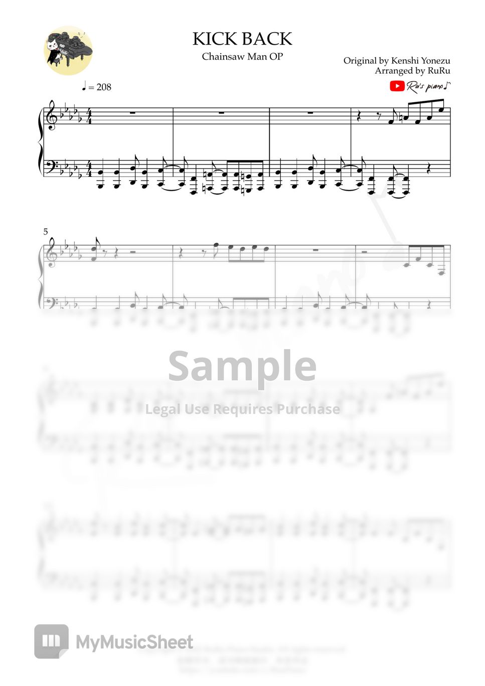 Chainsaw Man OP KICK BACK (1’30’’ ver.) Sheets by Ru's Piano